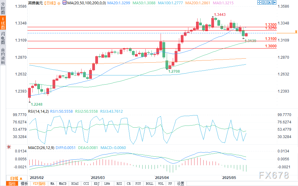 嘉盛——周二(5月13日)欧盘时段,英镑兑美元价格整体呈上升态势。多头力量在当日交易时段占据一定优势。投资者权衡美国贸易政策以及最新的经济数据。