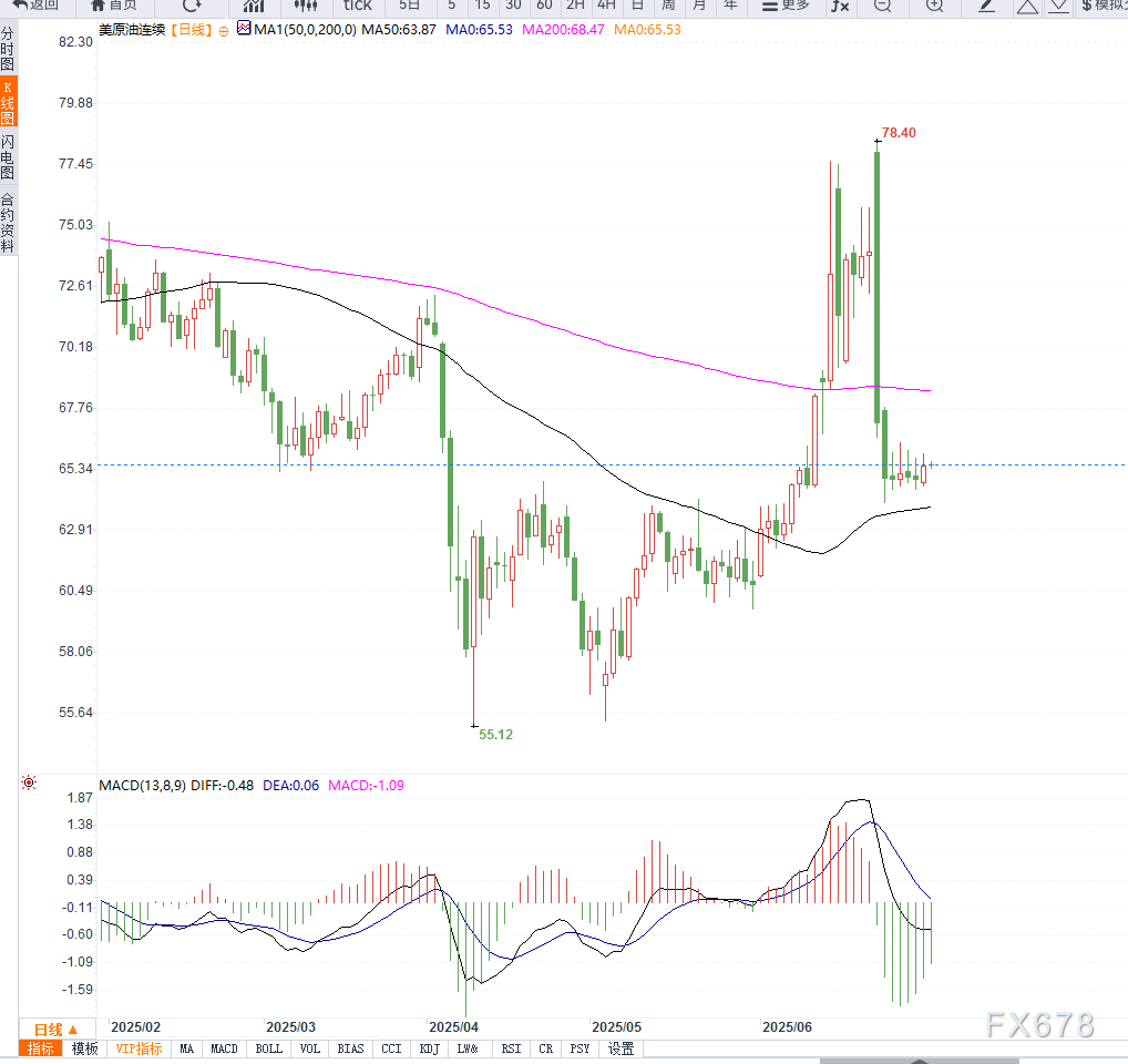 地缘风险方面,自伊朗与以色列12天冲突停止以来,市场对中东供应中断的担忧减弱,布伦特自6月25日以来在66.34至69.04美元之间波动。