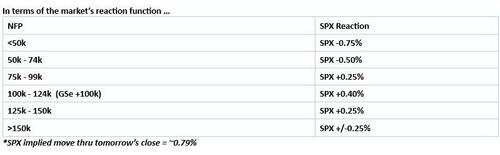 像往常一样,摩根大通的市场情报团队再度给出了“非农夜”的五类情景预测: