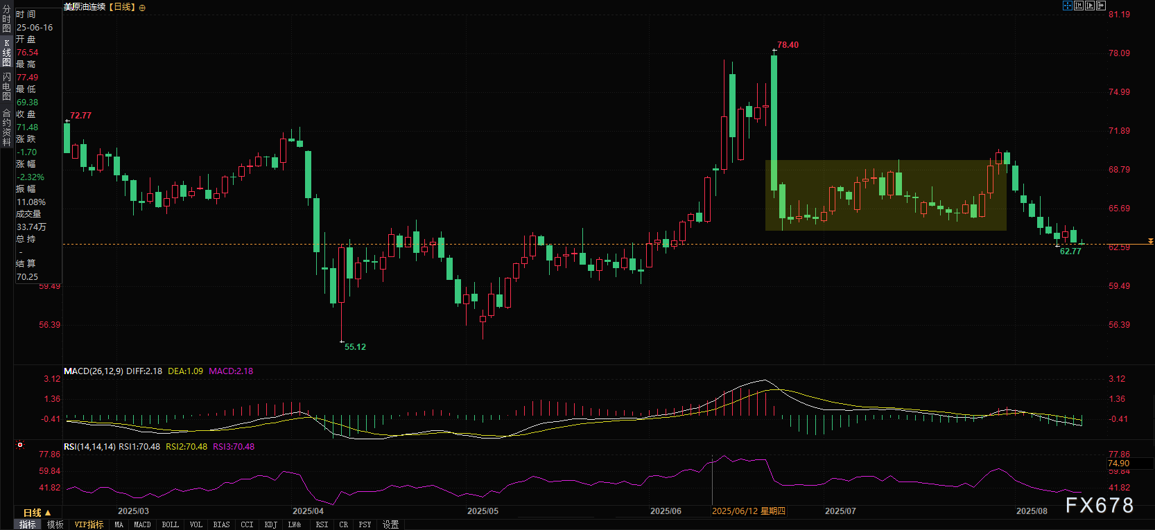 (美原油连续日线)   北京时间16:21,美原油连续62.83美元/桶。