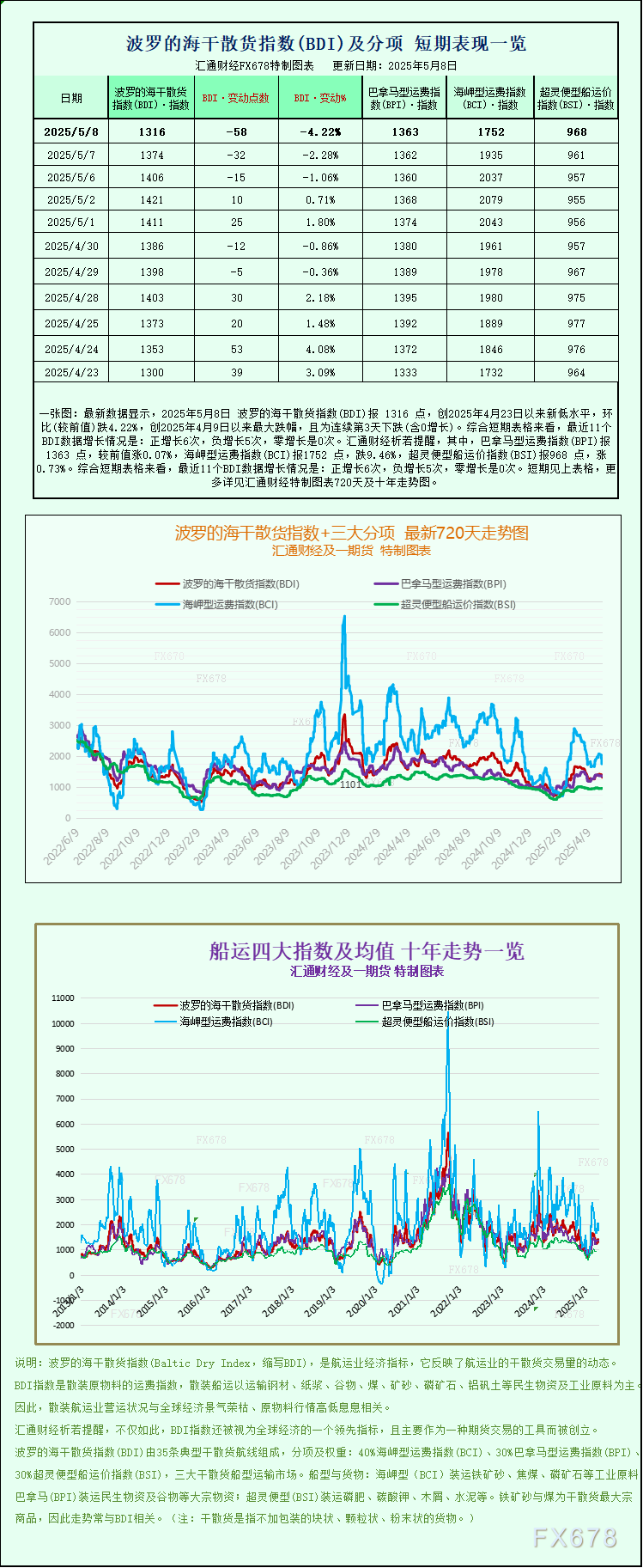 嘉盛——最新数据显示,2025年5月8日 波罗的海干散货...