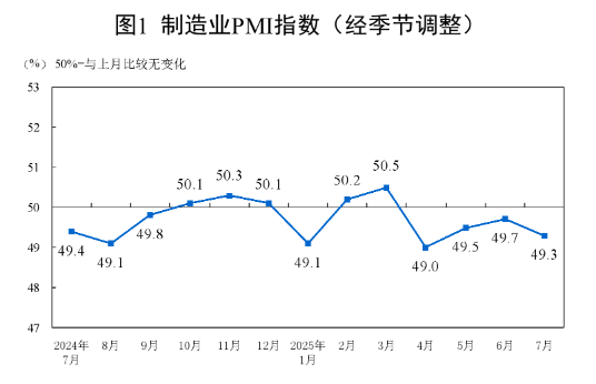 嘉盛平台官网:国家统计局:7月制造业PMI为49.3% 比上月下降0.4个百分点